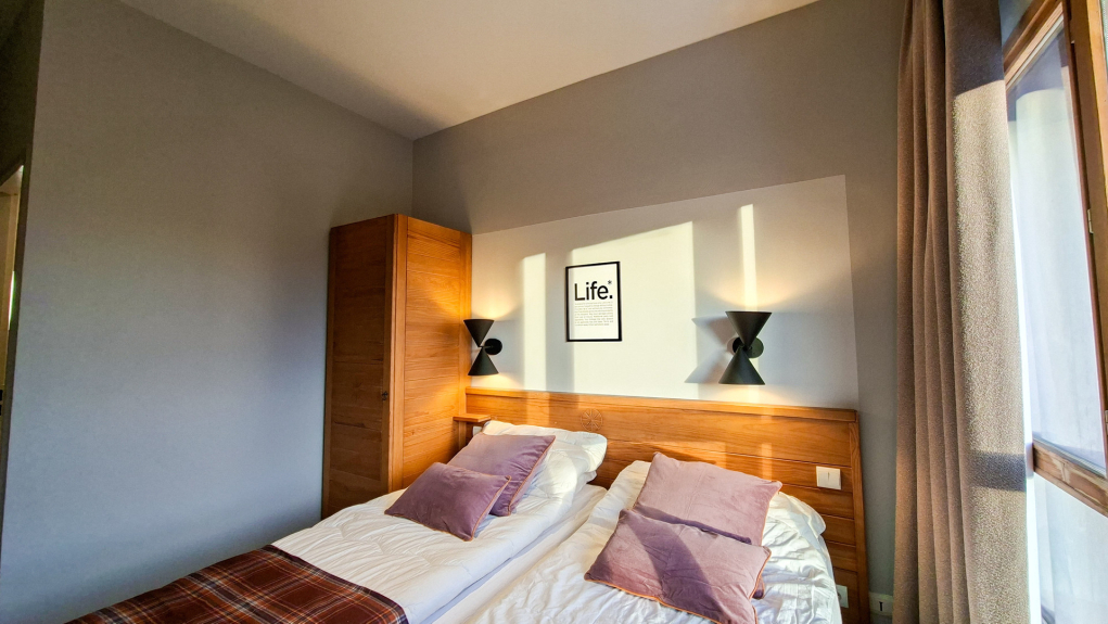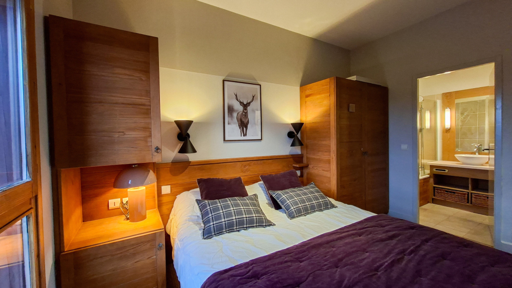 Résidence de tourisme 5 étoiles située au pied des pistes et à environ 400 mètres des commerces. Emplacements de parking couverts. Ascenseurs. Casiers à skis.