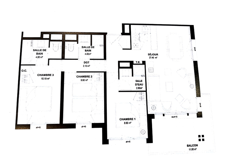 - 2 salles de douche dont l'une avec toilettes
