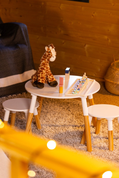 Des espaces de loisirs avec une salle de jeux équipée d’un baby-foot René Pierre et d’une borne d’arcade, une terrasse avec ping-pong et pétanque, et des coins cosy pour des instants de partage inoubliables.