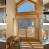 Magnifique chalet avec d'imposantes baies vitrées offrant une vue panoramique sur les montagnes environnantes.
