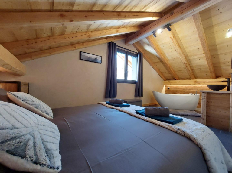Magnifique chalet 5* individuel neuf (2021)se situant dans une nature environnante préservée avec une architecture bois et pierre,un design chaleureux et raffiné,un mélange de modernité et d authenticité.