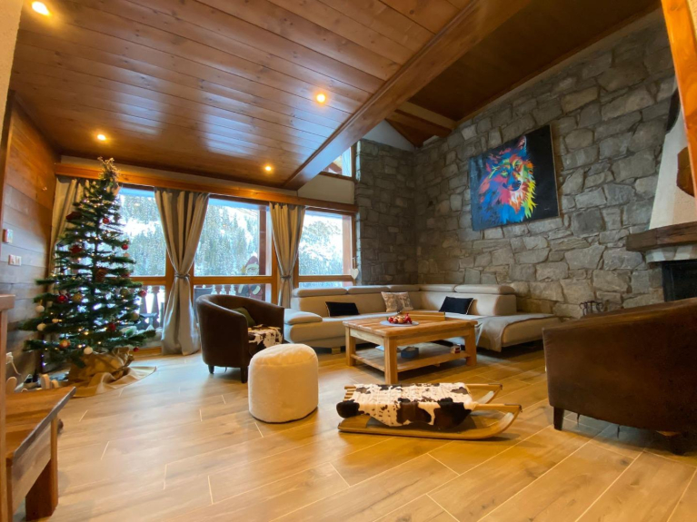 Le chalet dispose de 7 chambres de 2 personnes dont 1 suite familiale avec mezzanine séparée pour les enfants, 4 salles de douche.