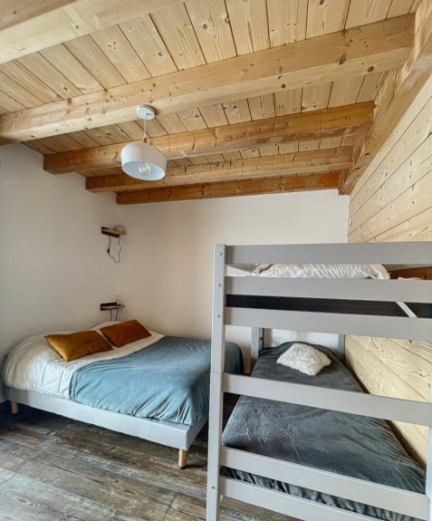 Une chambre avec un lit superposé 90x190 gigogne (3 couchages) et 1 lit simple 90x190