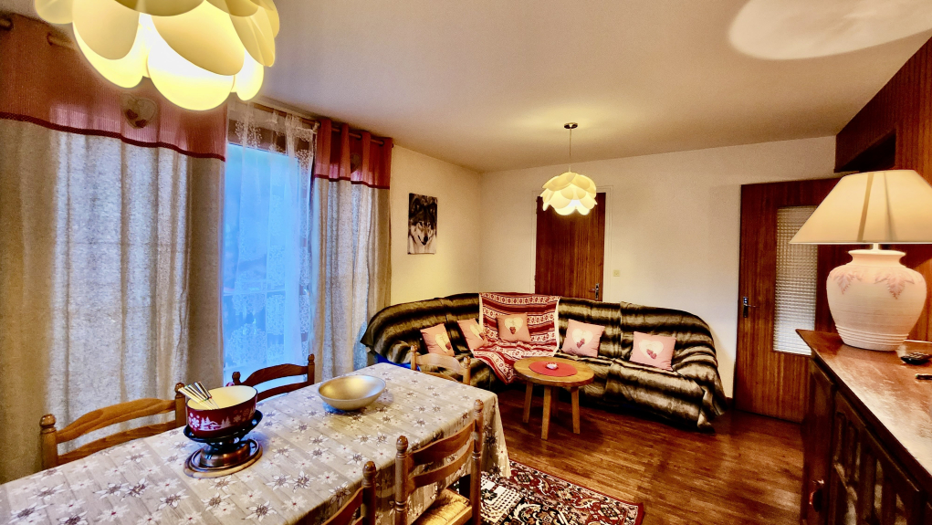 Bel appartement tout confort et très spacieux dans chalet avec quatre chambres, cuisine, séjour/ salle à manger.