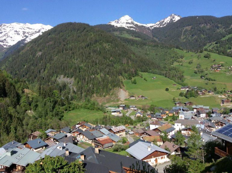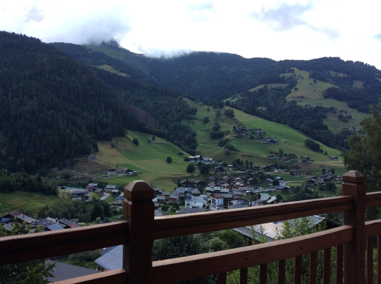 Dominant le village, le chalet est posé plein SUD OUEST, l’idéal, il regarde les montages, il a 3 logements, le notre à l’étage, un studio et un appartement au rez-de-chaussée.