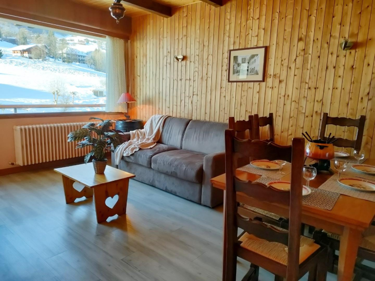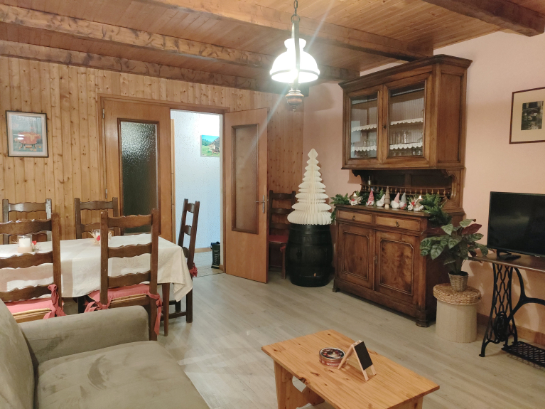 Appartement spacieux en rez de jardin. Deux chambres et un salon salle à manger équipé d'un canapé convertible permettent d'accueillir jusqu'à 6 personnes. En hiver, la plus proche station est à moins de 3km et le grand domaine de l'Espace Diamant est accessible à moins de 5 km. En été, de nombreuses promenades sont possibles et le jardin est accessible pour un moment de jeux ou de détente.