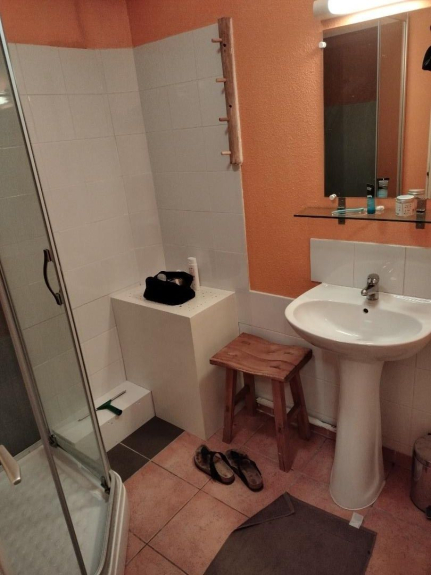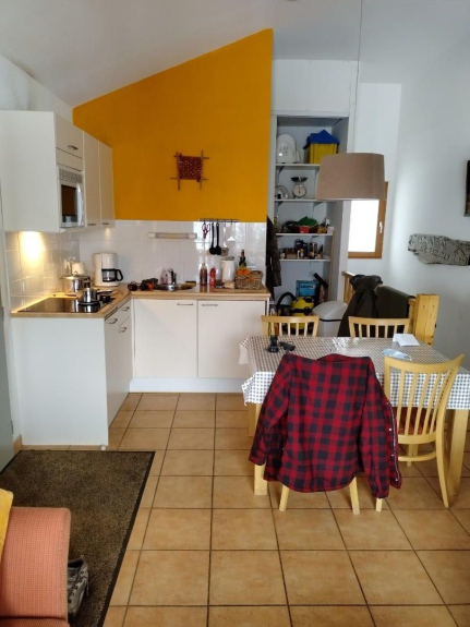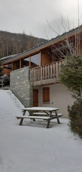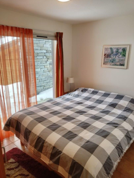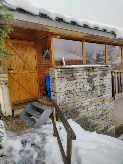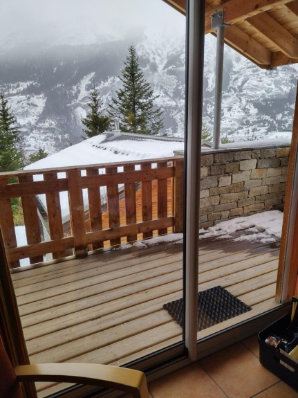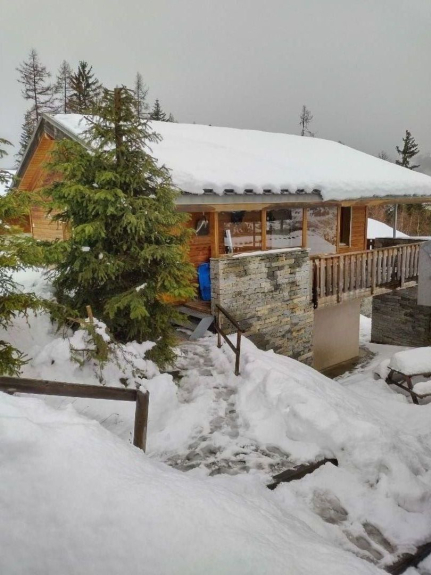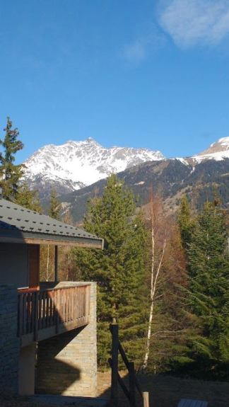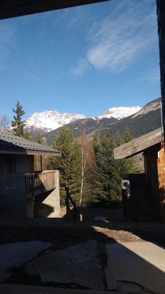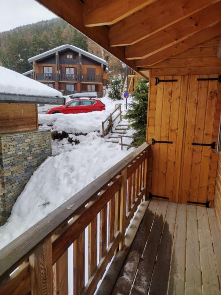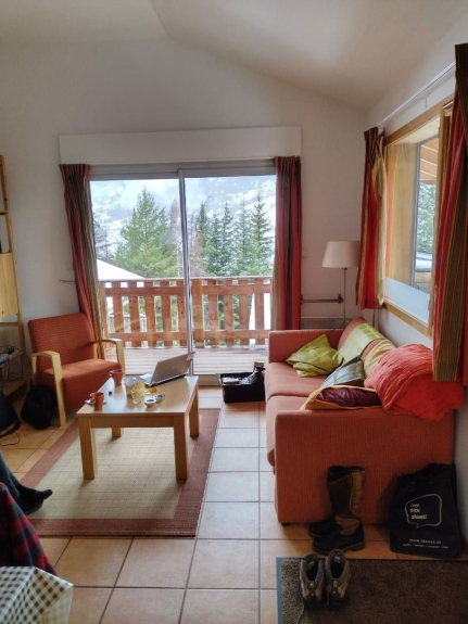 demi-chalet proche des pistes. 2 chambres dans salle de bain. douche dans les toilettes. grand balcon. bon parking. 5 personnes . avec de belles vues sur les montagnes.