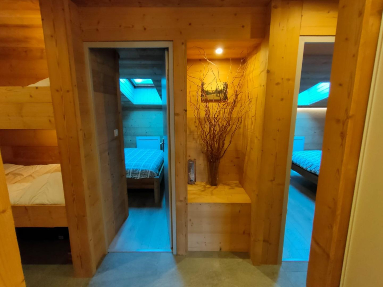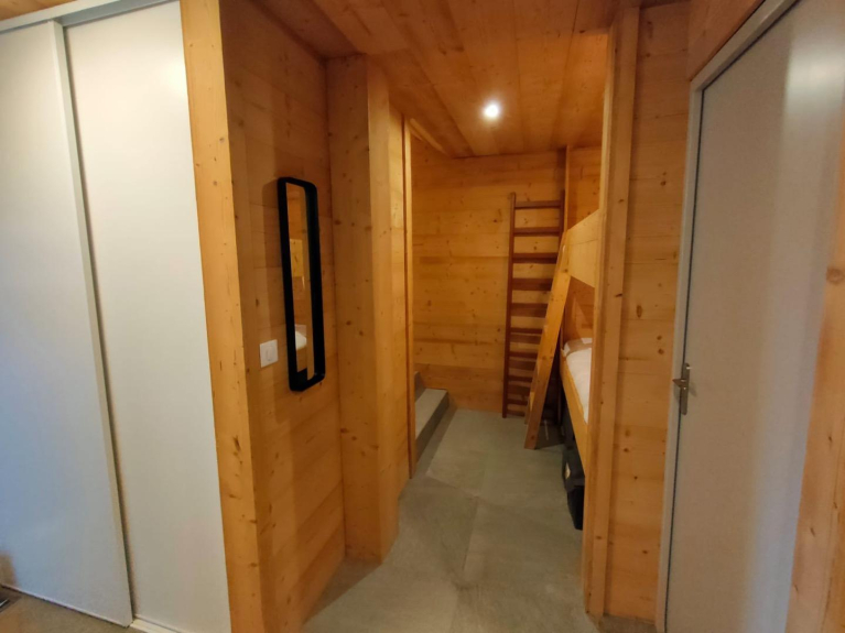 Appartement en duplex entièrement rénové composé d’une entrée et son coin montagne avec 2 lits superposés.