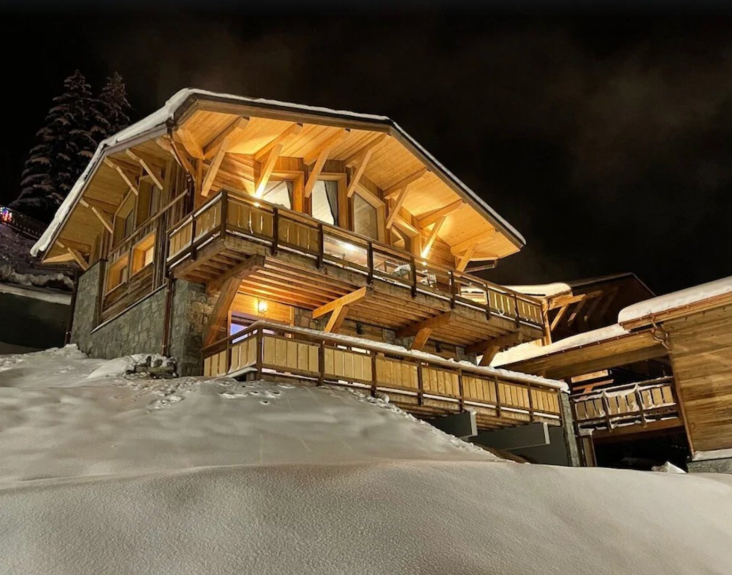 Châlet sur 4 niveaux, capacité 10 à 14 personnes maximum, vue sur les pistes, exposition plein Sud.
