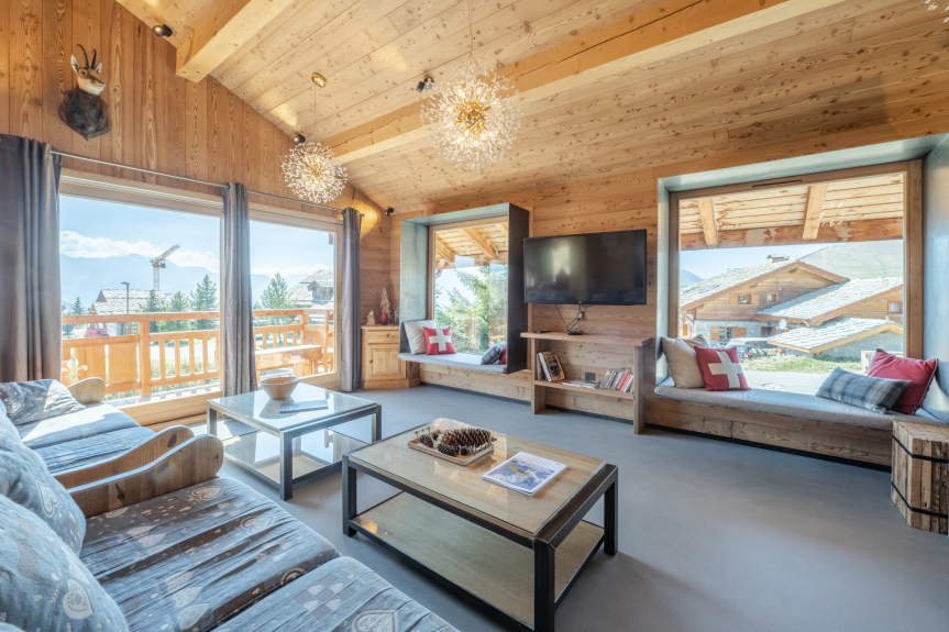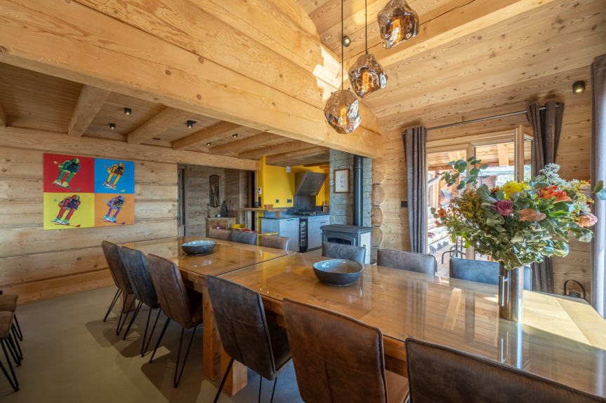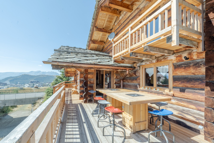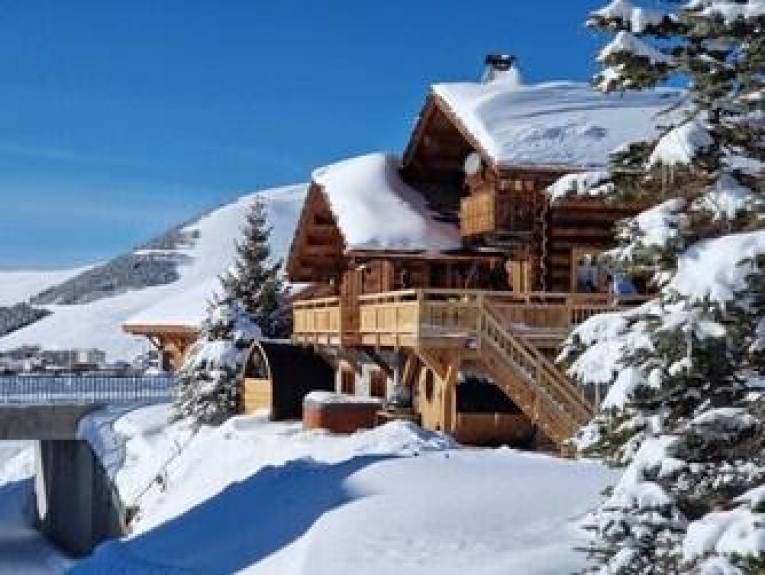 Notre chalet en rondins se trouve, dans le lotissement 'Les Chalets de l'Altiport', pour vous permettre de vous reposer dans un environnement calme de montagne et de chausser les skis devant le chalet.