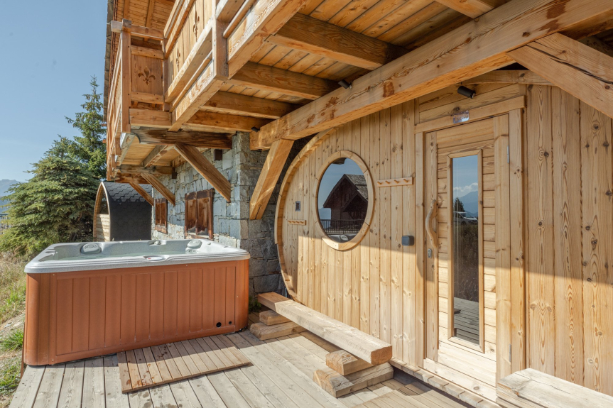 Il propose deux logements, chacun avec sauna, jacuzzi et local à skis/vélos, et pouvant communiquer pour des groupes ou familles plus nombreuses.