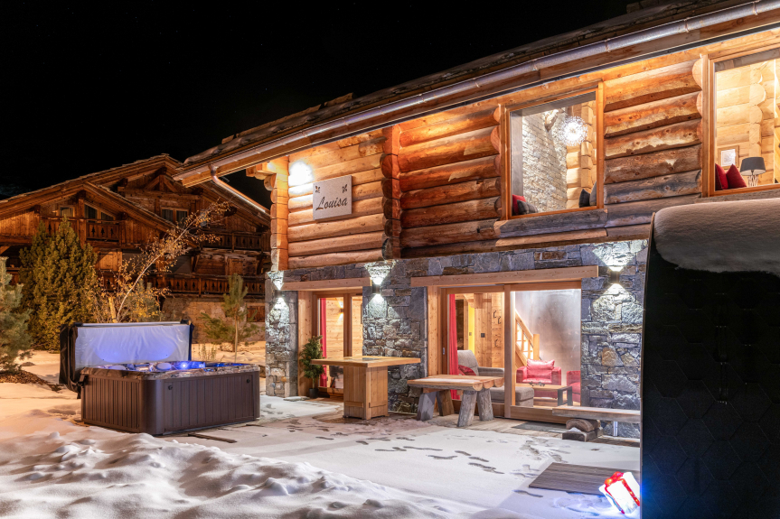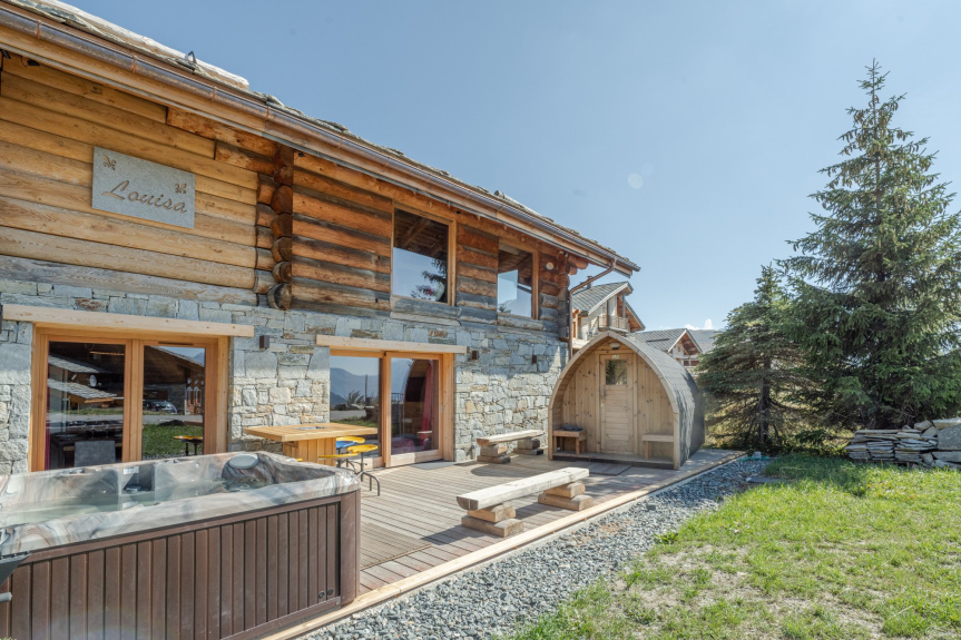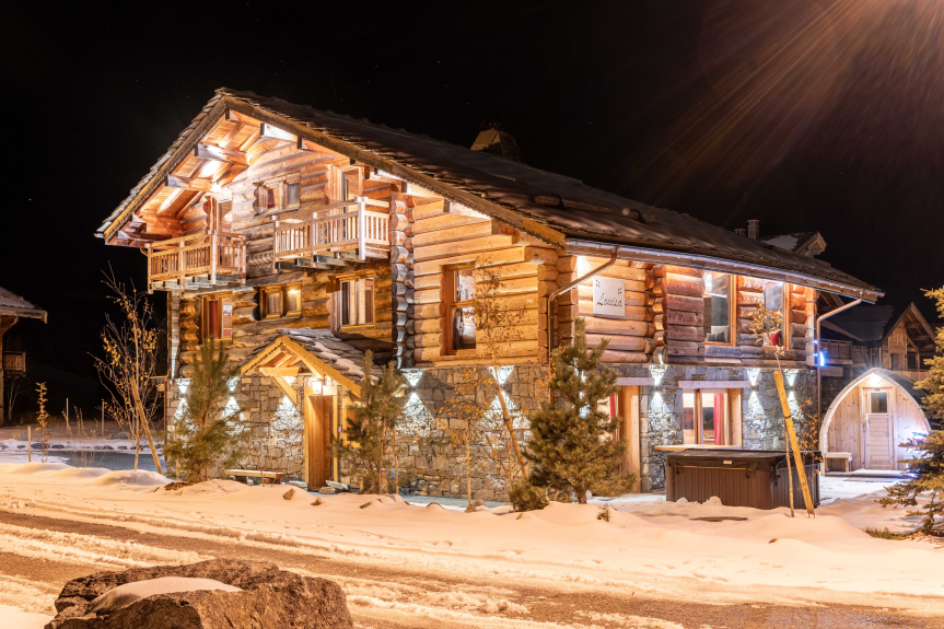 Notre chalet en rondins se trouve dans le lotissement 'Les Chalets de l'Altiport', pour vous permettre de vous reposer dans un environnement calme de montagne et de chausser les skis devant le chalet.