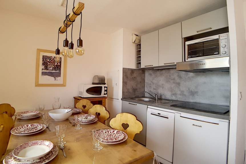 Appartement de 3 pièces, en duplex de 37 m² pour 6 personnes. Situé au 7ème étage (5ème niveau et avec ascenseur) il dispose d'un balcon orienté sud.
