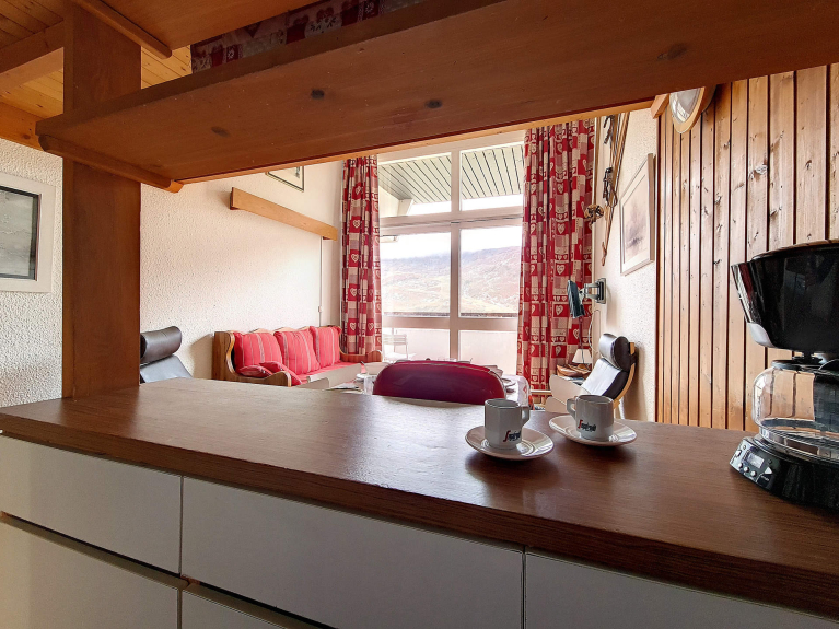 Appartement de 2 Pièces en duplex de 37m² avec mezzanine de 8 m² (hauteur inférieure à 1.80m) pour 5 personnes avec un balcon orienté Sud/Ouest situé au 7ème étage avec ascenseur.