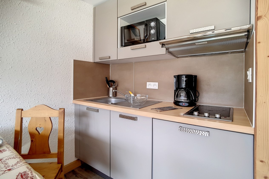 Beau studio entièrement rénové en 2015, d'une surface de 22m² pour 4 personnes. Situé au rez de neige d'une résidence proche du départ des remontées mécaniques et du point de départ ESF, il possède 1 balcon orienté Sud.