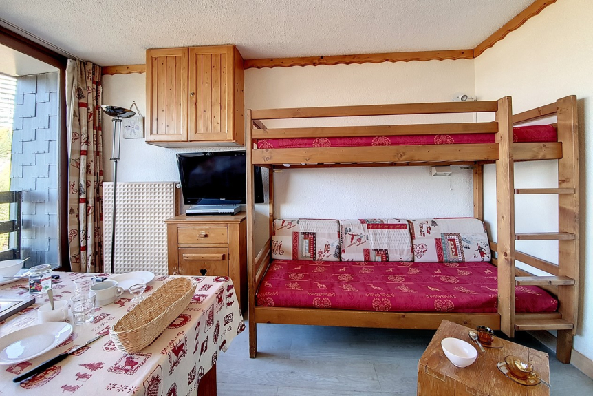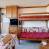 Séjour : 1 banquette simple, 1 banquette gigogne relevable, 2 lits superposés Equipé d'une télévision avec un lecteur DVD.