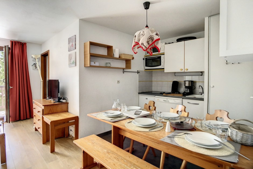 Appartement de 2 pièces avec cabine, de 30 m² pour 6 personnes. L'appartement est situé au 1er étage avec un grand balcon orienté Sud.