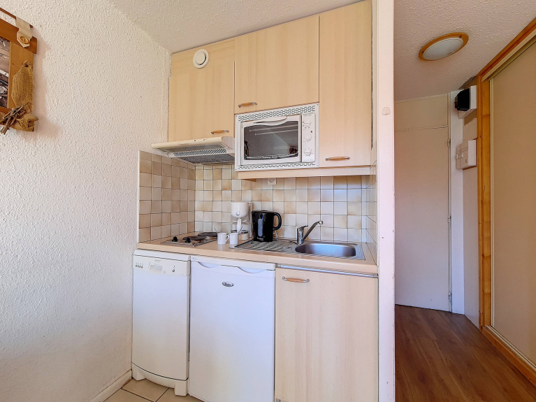 Studio de 20 m² pour 3 personnes. Situé au 7ème étage, il possède un balcon orienté Sud. Entrée 1.