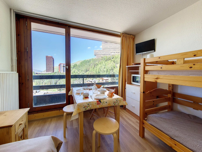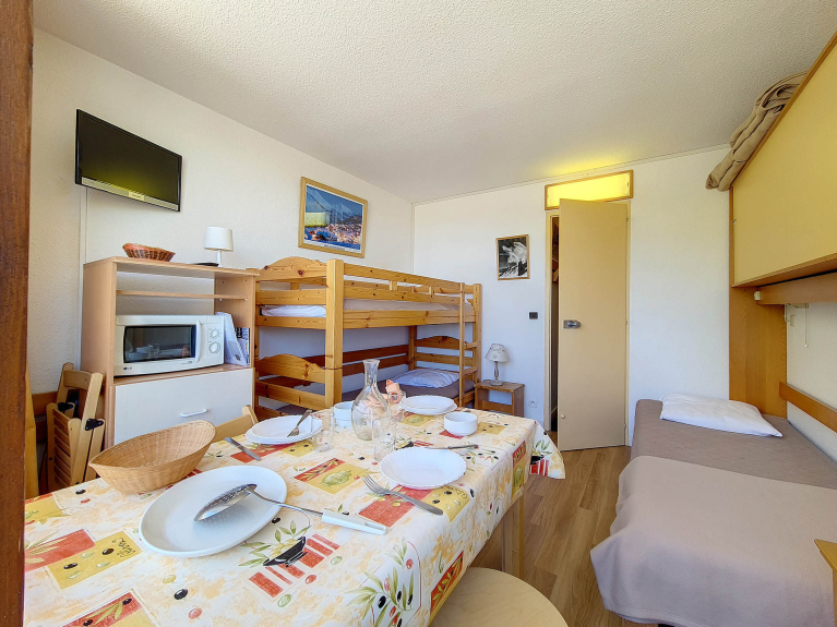 Séjour : 1 banquette lit 1 personne + 2 lits simples superposés. Equipé d'une télévision.
