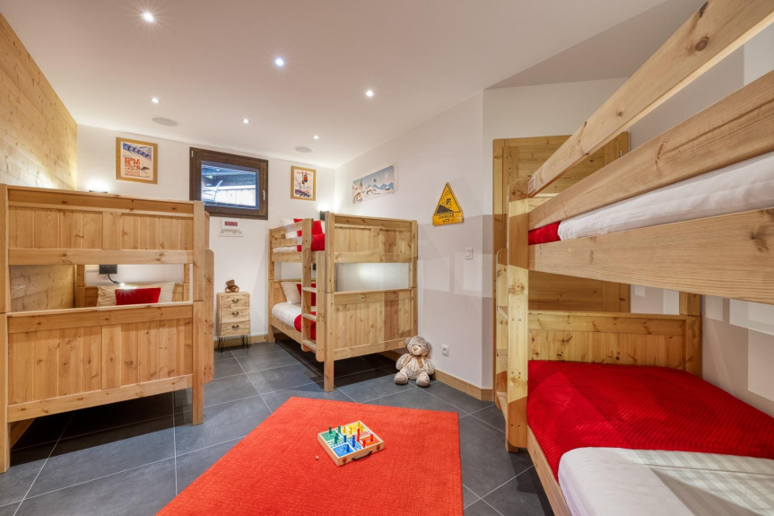 En séjournant dans notre Chalet Paradis Blanc Morzine, vous profiterez de près de 300m² avec notamment 6 chambres doubles en suite (salles de bains privatives) et un dortoir de 6 couchages (destiné exclusivement aux enfants mineurs), ainsi que d’un jardin entièrement équipé (mobilier de jardin installé uniquement en été) avec Spa et Sauna Timber’In.