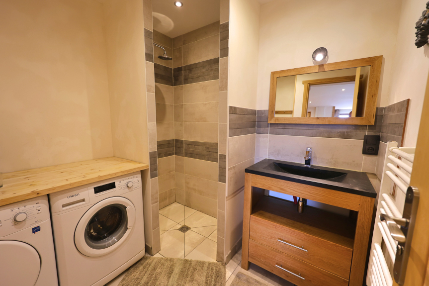 Au rez-de-chaussée, un séjour avec cuisine tout équipée deux chambres double, 2 salles de bains, 1wc, espace détente canapé et tv.