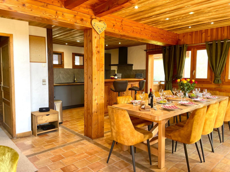 Chalet individuel, grand standing, pied des pistes (télésiège à. 100m) , proche ESF , commerces et restaurants, entièrement refait au printemps 2022, vue panoramique, calme, point de départ idéal pour randonnée de tous niveaux en été, 2 places de parking privées devant le chalet.