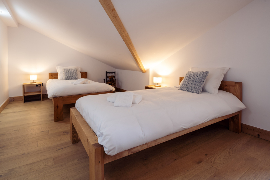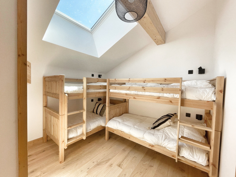 - Chambre enfant 2 : 2 lits simples (à noter : pièce sans fenêtre compensé par un éclairage lumineux et une décoration cocooning)
