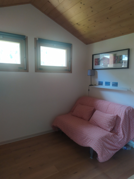 charmant studio situé aux Bossons dans un chalet individuel localisé dans un secteur calme avec vue sur le potager. Entrée indépendante au rez de chaussée qui ouvre sur un confortable sas d'entrée. Un escalier monte à la pièce principale équipée d'un canapé lit (140 cm) très confortable, d'une cuisine bien équipée (frigo, plaque induction 2 feux, bouilloire, cafetière, grille pain). La salle de bain dispose d'un lavabo, d'une douche et d'un WC. Le studio est très lumineux, bien agencé, et la décoration est chaleureuse.