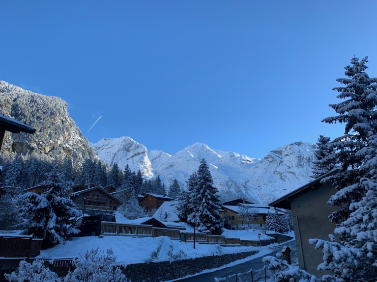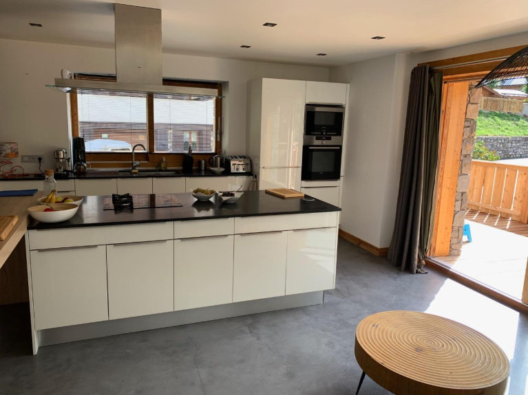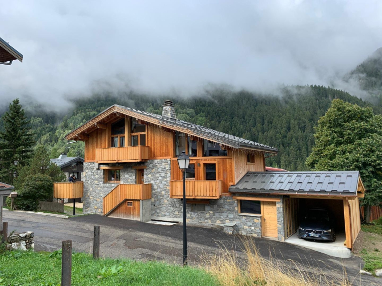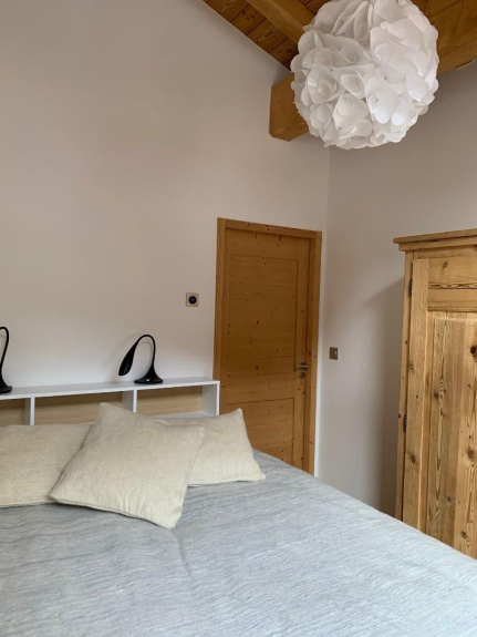 chalet récent, contemporain, situé à 1 km des pistes et du centre environ, navette gratuite devant le chalet (accès ski à pied à 500 m environ du téléski Lance Gralette, retour ski au pied possible par piste noire Combe des Pariettes)