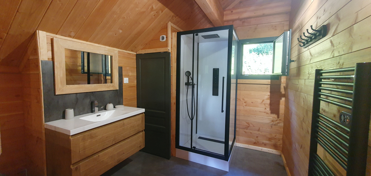 Le chalet est équipé de deux salles de douche, 1 au RDC et 1 à l'étage