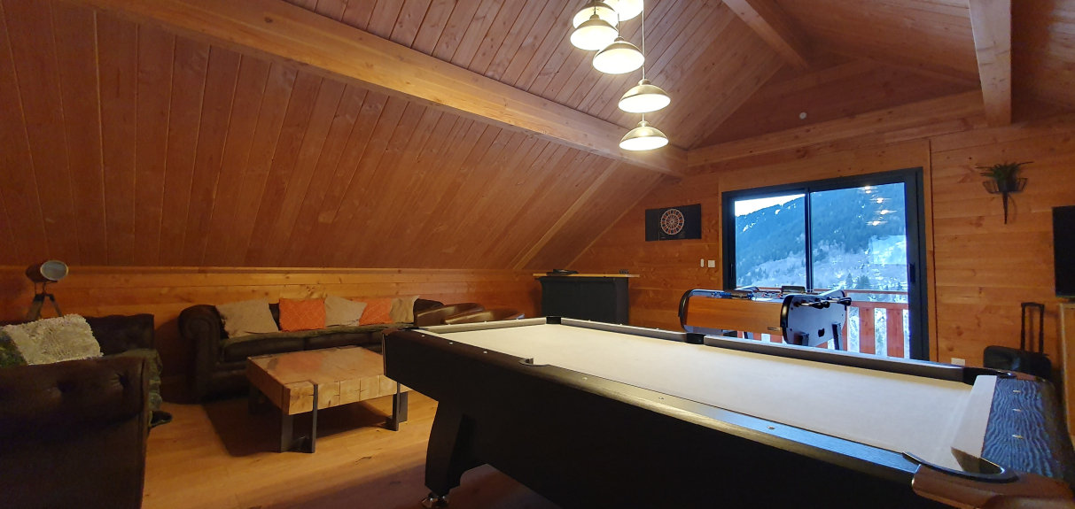 1 Billard américain, 1 baby-foot, 1 enceinte wifi, 1 bar, flechettes,des jeux de société…