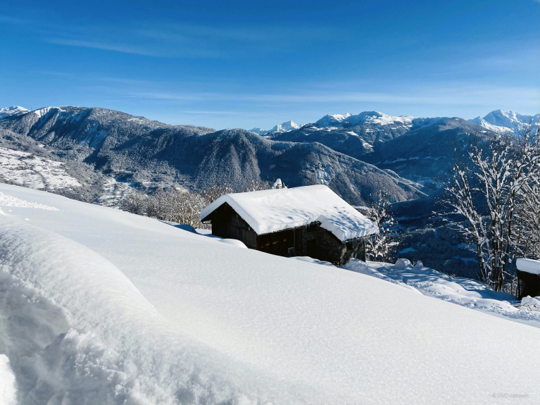 Situé au cœur des alpages et bénéficiant du cadre incomparable des sommets alpins, il se trouve pourtant à moins d’un kilomètre du village de Doucy et à 6 km de Valmorel. Un sentier de 500 m à travers les pâturages relie l’aire de stationnement au chalet, lui garantissant un isolement tout à fait dépaysant.