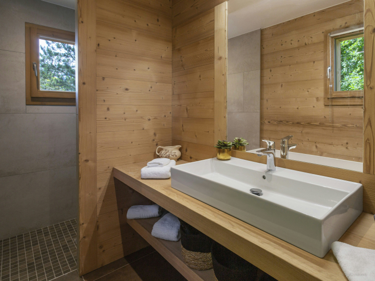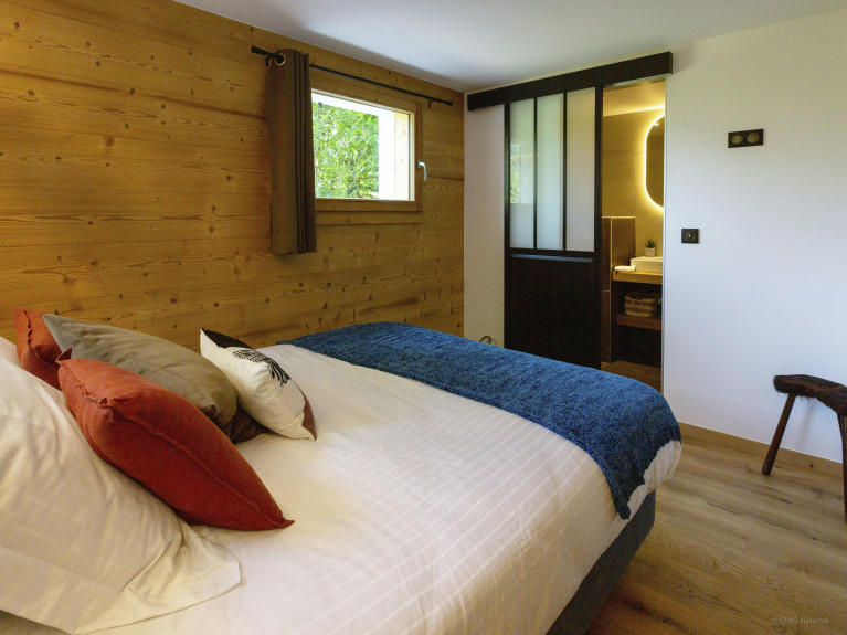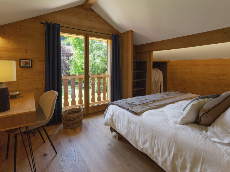 Sous les combles vous trouverez deux chambres. L’une d’elles compte un lit king size et un balcon. Ouvrez grand les portes et sirotez votre café au petit matin tout en respirant l’air pur des montagnes. Le couchage de la seconde chambre peut être agencé en lit king size ou en lits jumeaux. Les deux chambres se partagent une salle d’eau. La troisième chambre, située au premier, compte un lit king size adaptable en lits jumeaux. Elle dispose de sa propre salle d’eau attenante.
