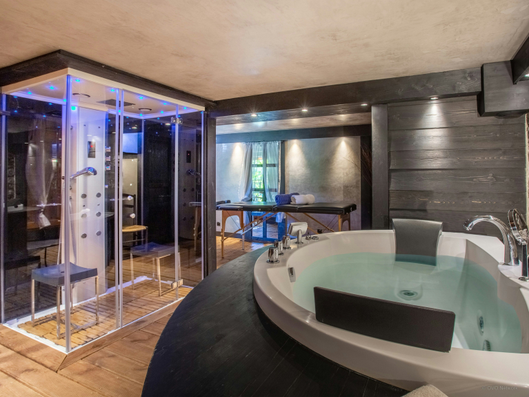 Une piscine chauffée d’intérieur, un espace bien-être avec jacuzzi, sauna et table de massage, trois salons distincts, une terrasse et un jardin ensoleillés composent ce chalet. Tout est donc réuni pour passer un séjour d’exception, quelle que soit la période à laquelle vous décidez de venir.