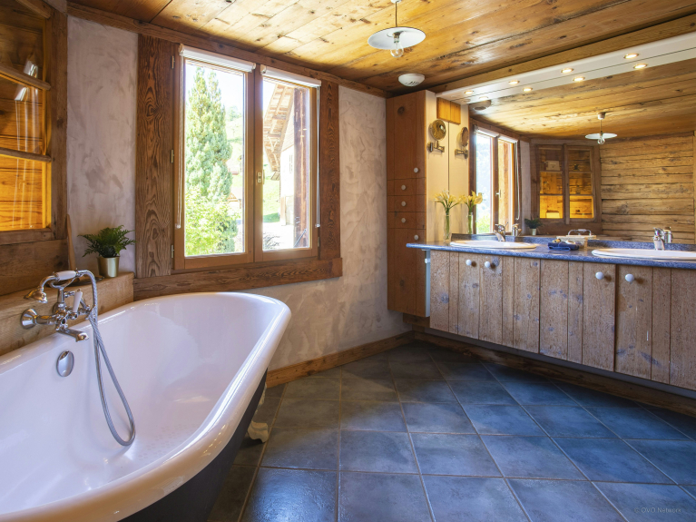 Ce ravissant chalet traditionnel peut accueillir dix personnes au maximum. Il compte cinq chambres et quatre salles de bain. L’hébergement est réparti sur trois niveaux, inclut des chambres douillettes et des salles de bains très élégantes à chaque étage, ce qui en fait un logement idéal pour plusieurs familles.