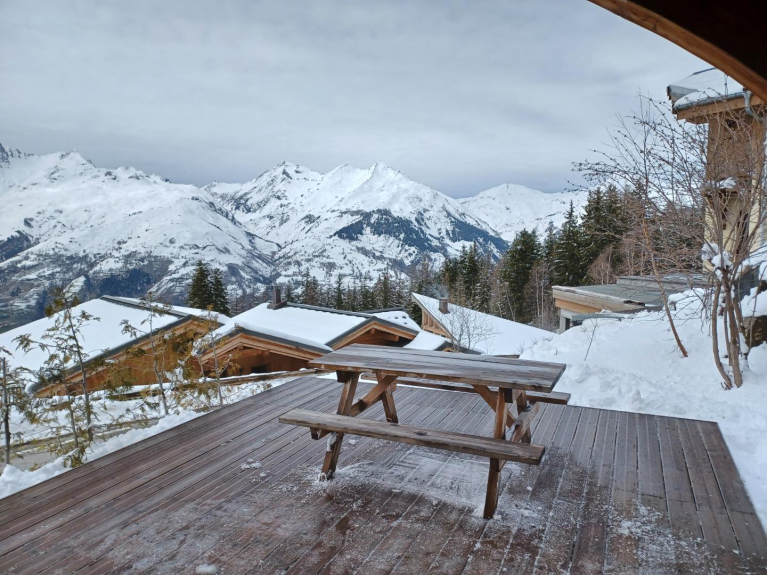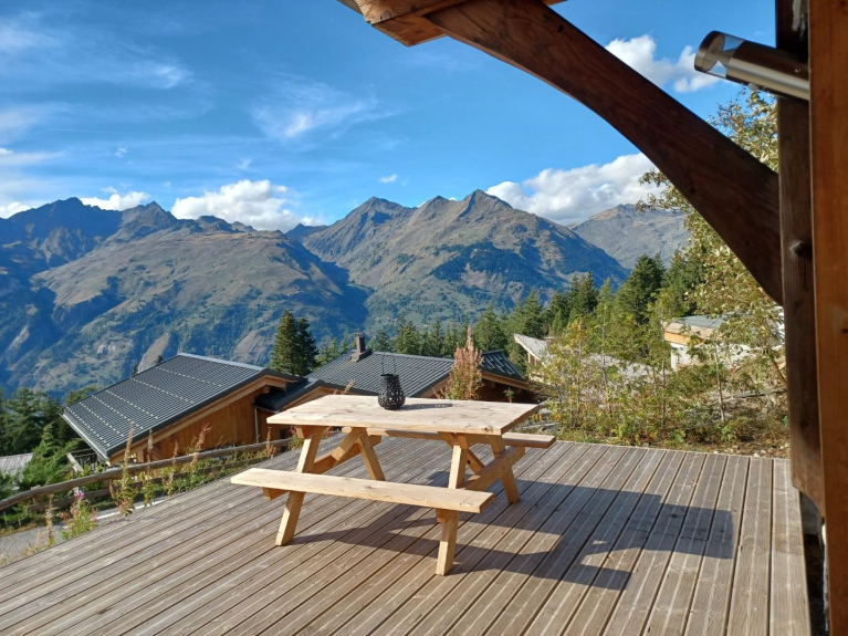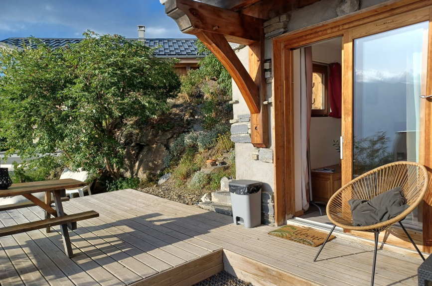 Charmant studio lumineux et calme disposant d'une terrasse privative, espace barbecue et petit jardin avec une vue imprenable sur les montagnes et la vallée. Classé 5 cristaux.