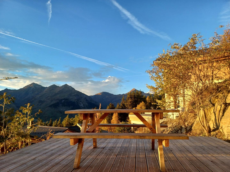 10 mn à pied du cœur de la station d'Arc 1600, des remontées et de l'arrivée du funiculaire.