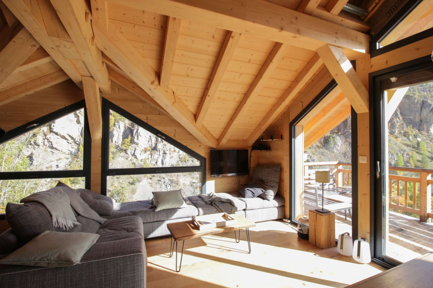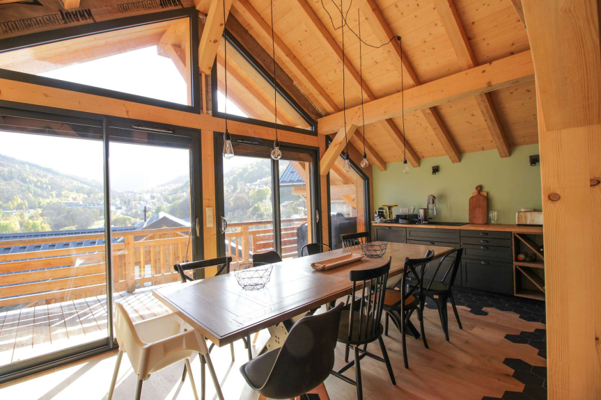 Terrasse 15 m2 avec salon de jardin et barbecue l'été. CHALET NON FUMEUR.
