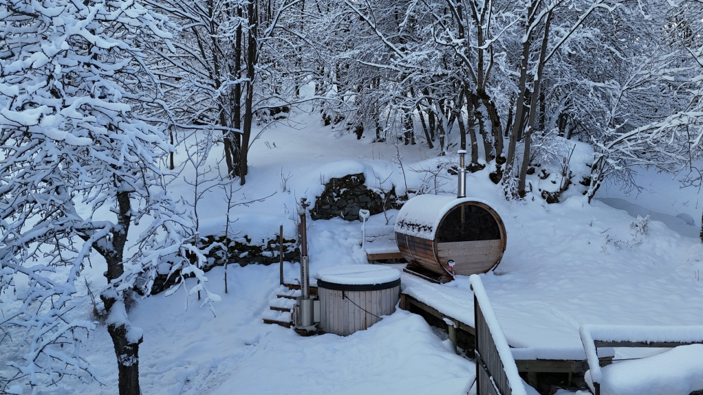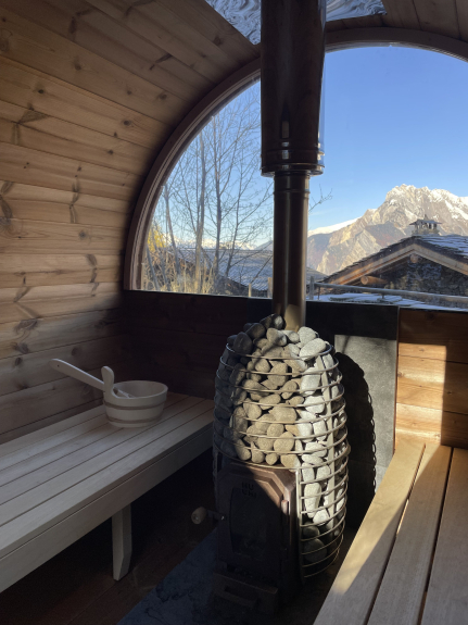 Un espace détente pour l’après ski vous attend dans le jardin : sauna et jacuzzi avec vue sur la montagne et le ciel étoilé.