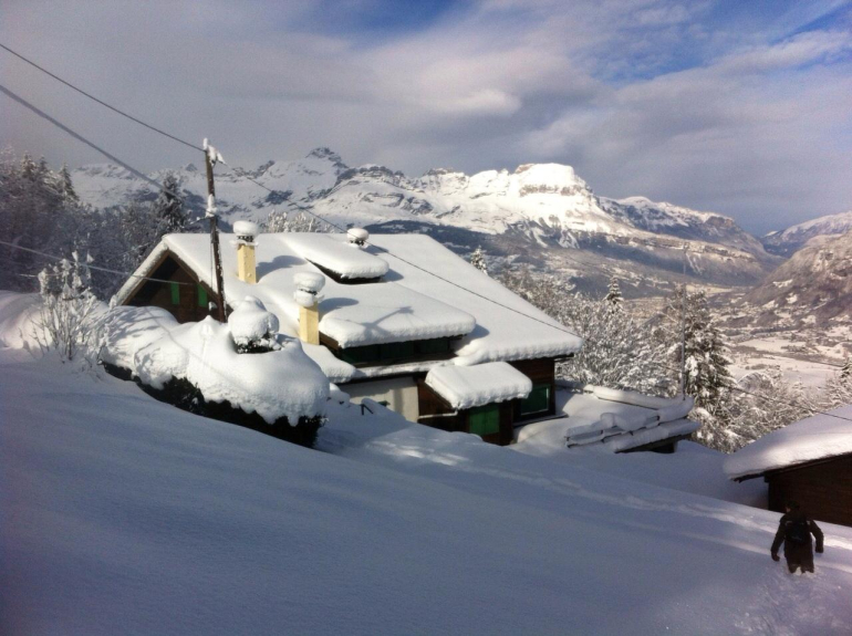 Il est en montagne et accessible uniquement à pied. Le lieu de stationnement est 300 mètres au dessus du chalet ou l’on y accède par un chemin dans la neige : c’est un lieu magnifique et calme. La vue est superbe.