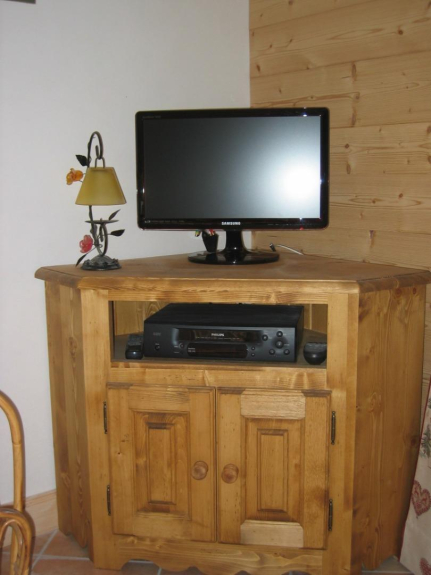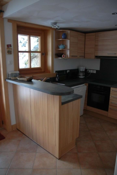 Il comprend un séjour et une cuisine toute équipée avec lave-vaisselle, donnant directement sur une terrasse bois exposée sud-est et vue panoramique sur le massif du Mont Blanc,