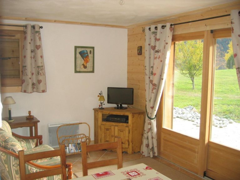Dans un cadre exceptionnel face au Mont Blanc à 1000m d’altitude entre Saint Gervais et St Nicolas de Véroce, à 3 km des remontées mécaniques, d'un accès facile par TGV ou autoroute, appartement familial de standing de 50m² entièrement neuf au RdC d’un grand chalet, pour 4 personnes (idéalement pour un couple et deux enfants).