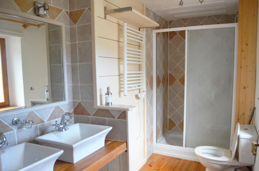 - au 1er étage, deux chambres avec lit double (dont un en 160cm de large) et salles de douche-WC privatives, possibilité sur demande de rajouter un LIT BÉBÉ