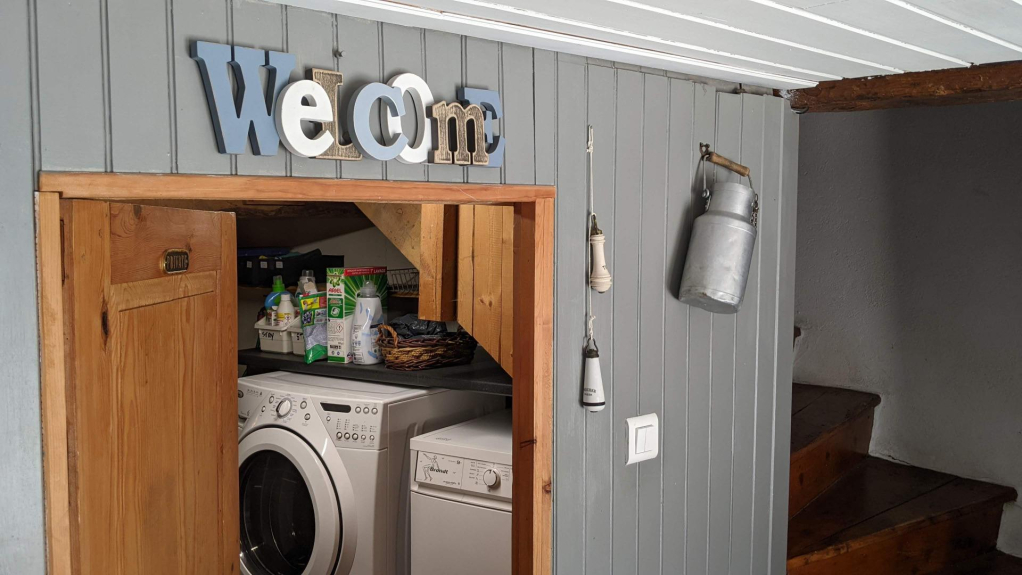- au sous-sol, un WC, un local à skis et vélos et une buanderie avec lave-linge et sèche-linge et un grand réfrigérateur avec congélateur