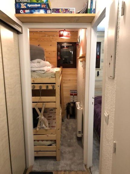- coin montage avec 2 lits superposés 80 x 190 (couette et oreiller fournis, prévoir housse de matelas, draps, housse de couette et housses d'oreiller)