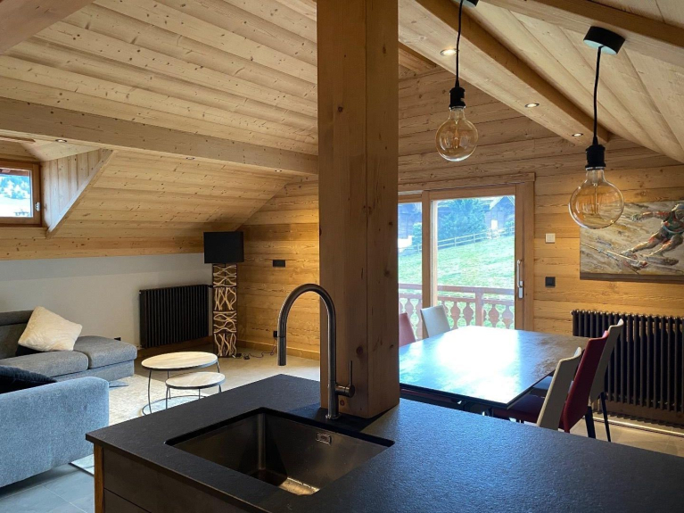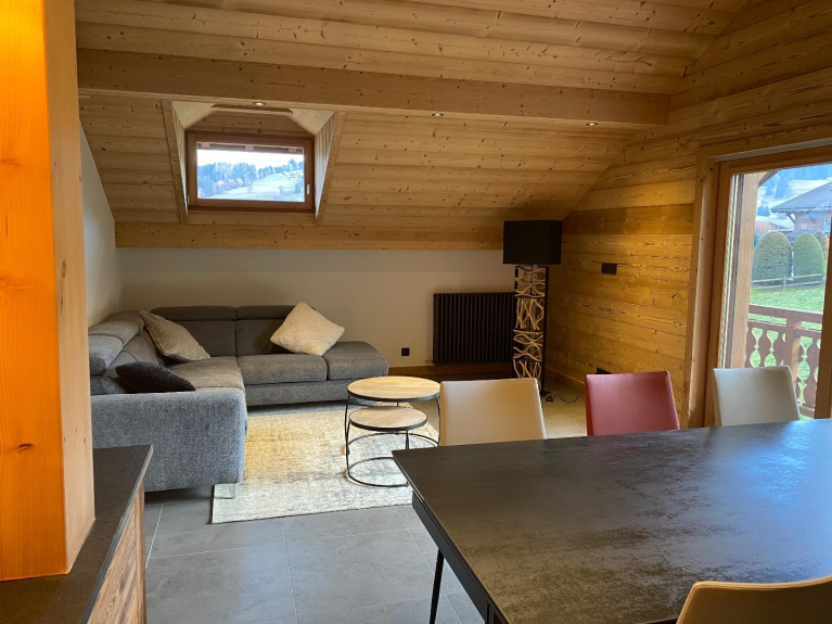 Appartement chaleureux situé dans un chalet offrant une belle vue sur la chaîne du Mont-Blanc, pouvant accueillir 6 personnes.