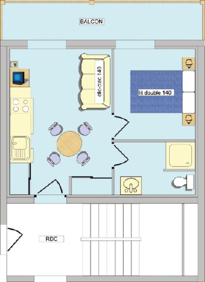 Appartement type T1bis de 30 m2 en rez-de-chaussée avec :