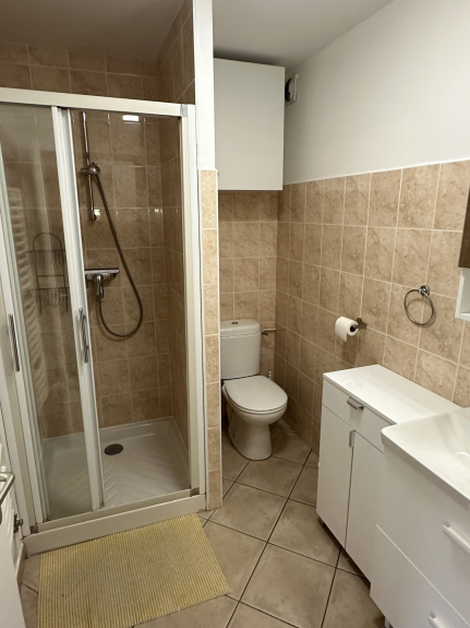 Une salle d'eau + WC avec douche et sèche-serviettes