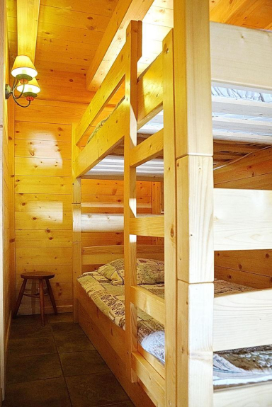 - 1 chambre au rez-de-chaussée avec 1 lit de 160 (2 personnes) + 1 lit superposé de 90 dans un coin montagne fermé + deux salles d'eau et WC