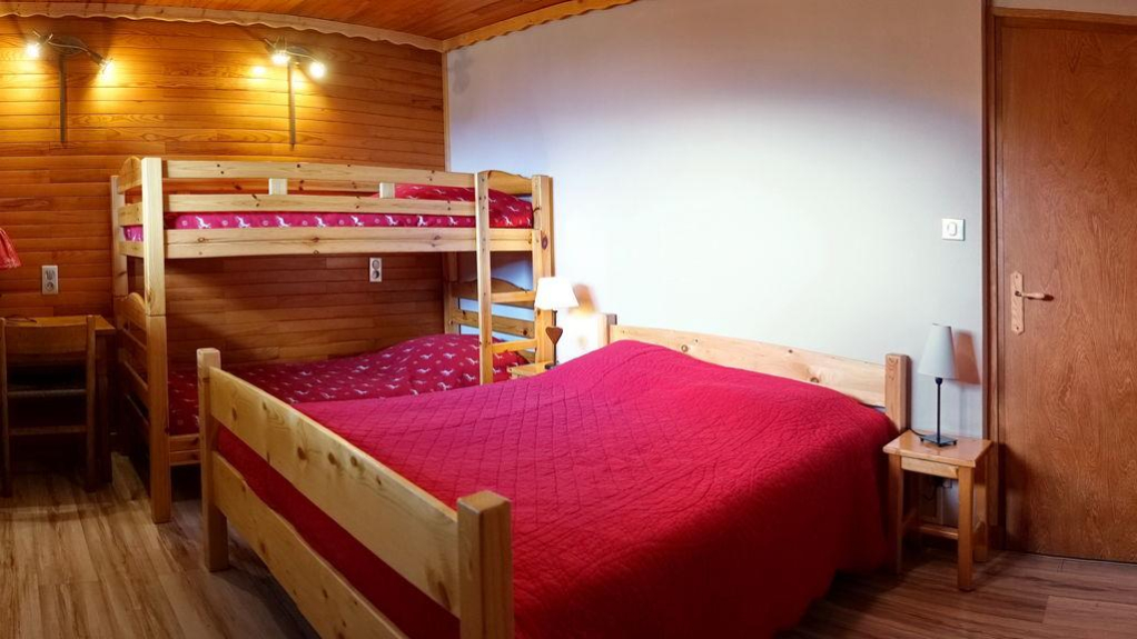 -1 chambre avec 1 lit de 140 (2 personnes + 1 lit superposé de 90 (2 personnes) avec salle d'eau et WC